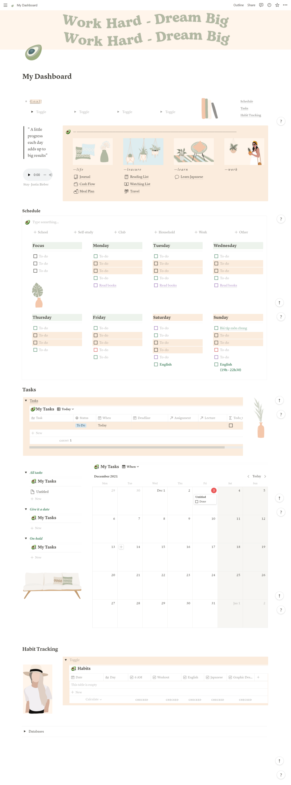 My Notion package will solve that problem. It is made of many different functional pages which can make your life organized and good-looking workspace.